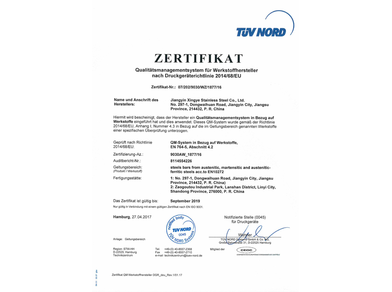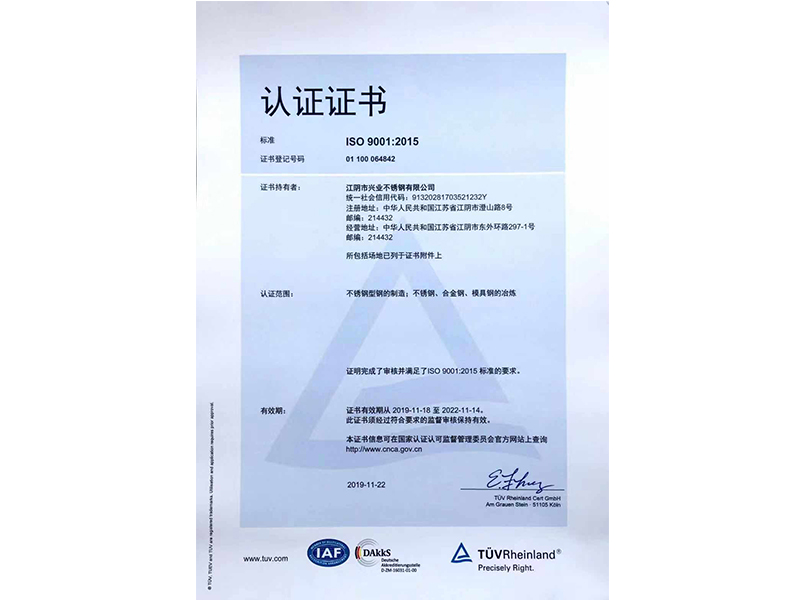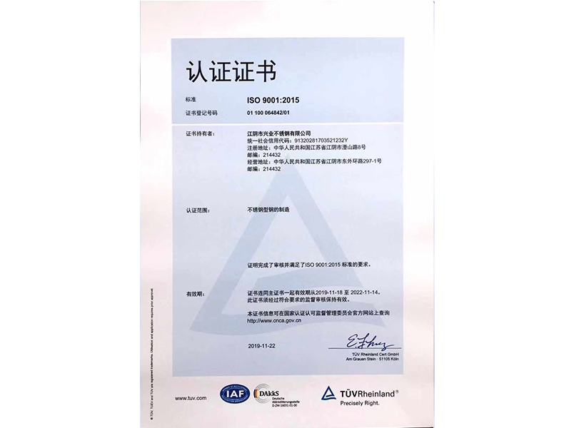 本公司按照ISO9001:2015質(zhì)量管理體系的標(biāo)準(zhǔn)要求,建立了質(zhì)量管理體系,并通過TUV認(rèn)證
